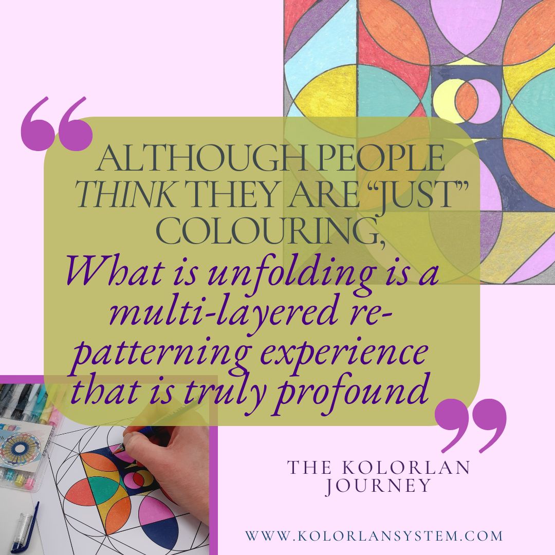 "I find the Kolorlan practices interesting, creative, calming and contemplative – on one level it's mindful and absorbing – on another level it has the capability to be a transcendent experience." Lynne S.