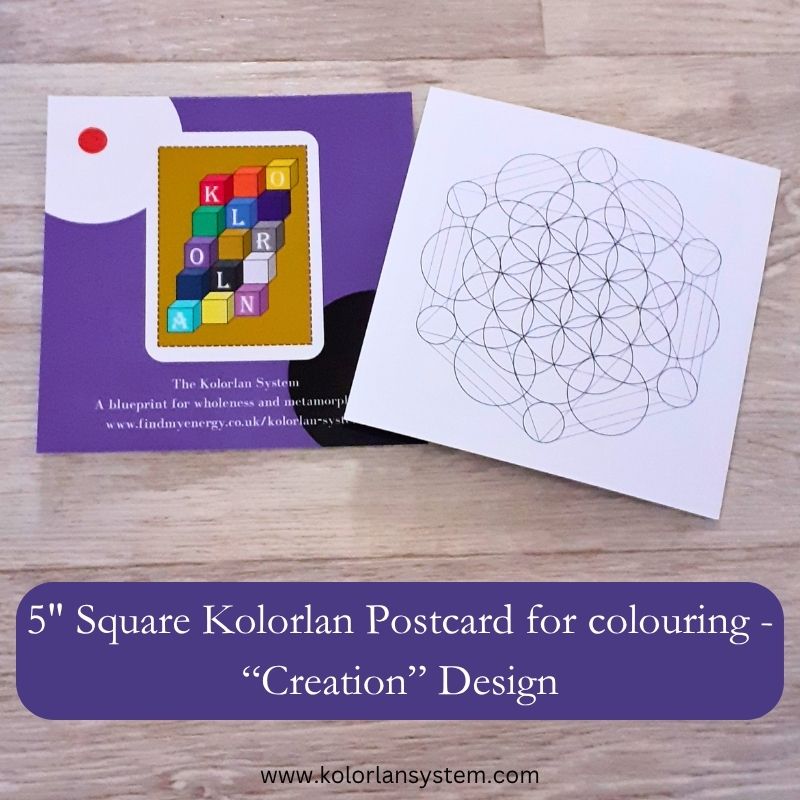 Unwind and unleash your creativity with our 5" Square Postcard - Creation Design. Use the Kolorlan System to reconnect with your true Self and explore your inner world through colour and Sacred Geometry. Perfect for adult colouring, relaxation, and mindfulness. Frame your beautiful art and add a touch of inspiration to your space.