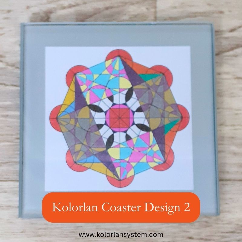 This is a one-off Kolorlan Coaster created with Sacred Geometry and colour for a unique energetic frequency. Water responds to this frequency to form beautiful crystals - structured water - that may contribute to feelings of peace and wellbeing. (See more in the video). This Kolorlan Coaster has been hand-coloured and assembled by me and is a unique design that will not be repeated in exactly the same way.