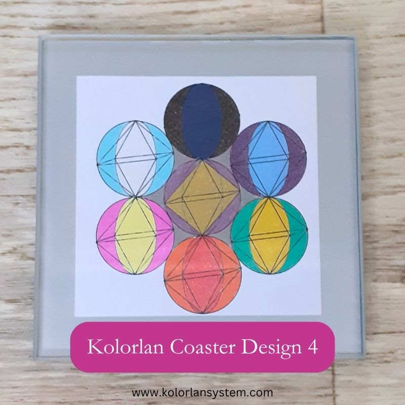 This is a one-off Kolorlan Coaster created with Sacred Geometry and colour for a unique energetic frequency. Water responds to this frequency to form beautiful crystals - structured water - that may contribute to feelings of peace and wellbeing. (See more in the video). This Kolorlan Coaster has been hand-coloured and assembled by me and is a unique design that will not be repeated in exactly the same way.